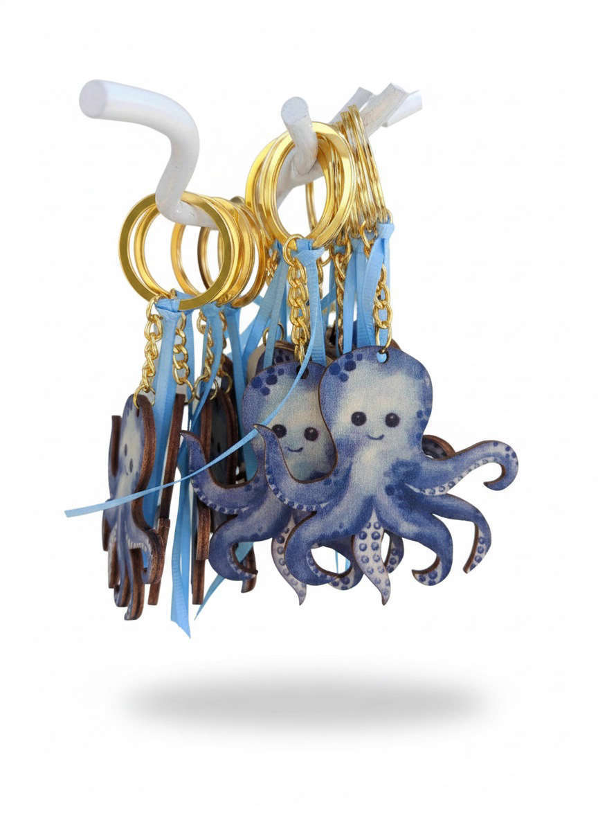 Μπομπονιέρα μπρελόκ με ξύλινο χταπόδι, το ξύλινο στοιχείο μπορεί να γίνει σε όλα τα θέματα.