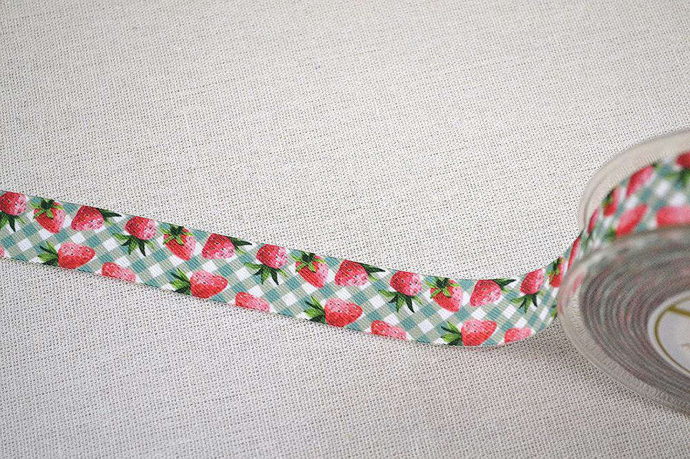 Κορδέλα polycotton καρό με φράουλες χωρίς τελείωμα