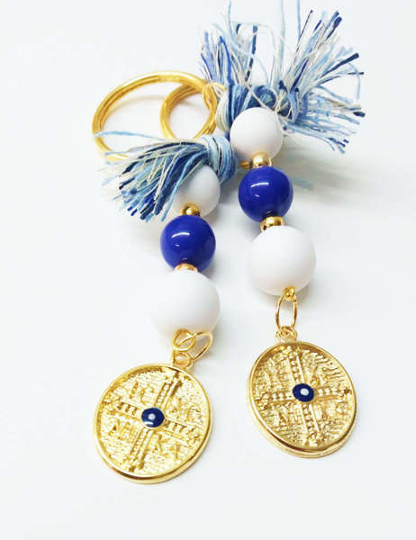 Μαρτυρικό μπρελόκ με κωνσταντινάτο, χάντρες και φιόγκος από νήματα