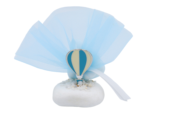 Μπομπονιέρες βάπτισης για αγόρι μεταλλικό αερόστατο πάνω σε βότσαλο