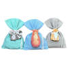 Μπομπονιέρα βάπτισης για αγόρι - υφασμάτινα πουγκιά σε 3 χρώματα (βεραμάν, μπεζ, σιέλ) με δέσιμο από δίχρωμο κορδόνι γιούτας και ξύλινη φιγούρα με ζωάκια. Το ξύλινο στοιχείο μπορεί να προσαρμοστεί στο θέμα της επιλογής σας. Επιπλέον υπάρχει η δυνατότητα να προστεθεί μαγνητάκι στο ξύλινο στοιχείο