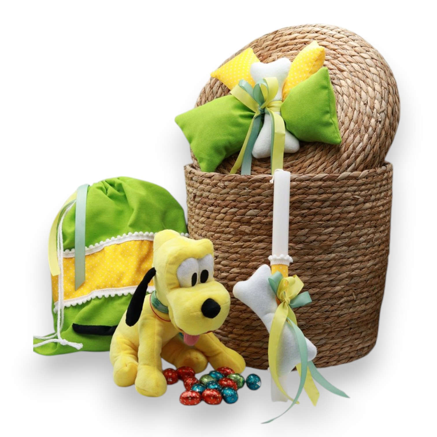 Χαρούμενο και ολοκληρωμένο πασχαλινό σετ δώρου με πρωταγωνιστή τον αγαπημένο Πλούτο της Disney, σε φωτεινές κιτρινοπράσινες αποχρώσεις.