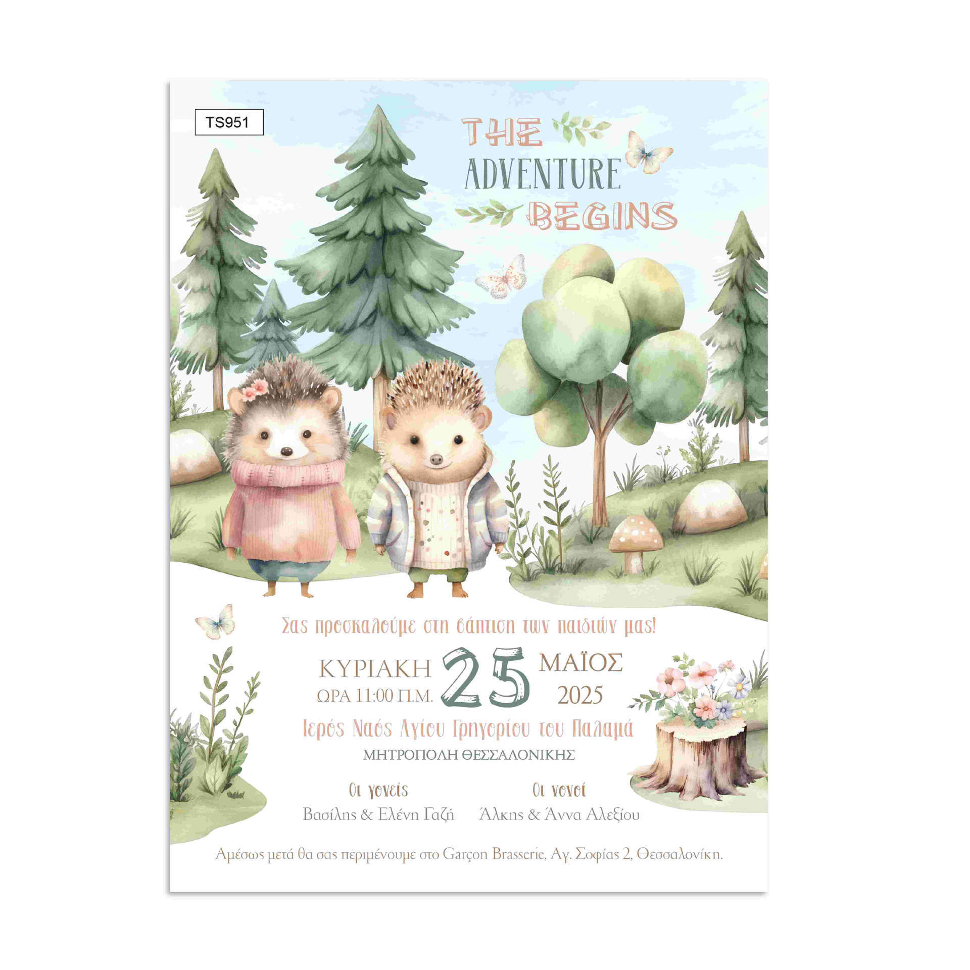 Προσκλητήριο βάπτισης για δίδυμα εκτυπωμένο με θέμα Twin Σκαντζοχοιράκια