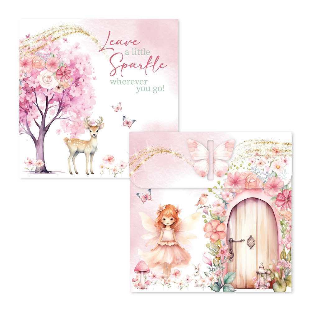 Το εκτυπωμένο προσκλητήριο βάπτισης για κορίτσι με θέμα Fairy Pink Garden δημιουργεί ένα μαγευτικό σκηνικό εμπνευσμένο από έναν ρομαντικό κήπο με νεράιδες και λουλούδια. Οι απαλές ροζ αποχρώσεις, οι λεπτομέρειες φύσης και η ονειρική εικονογράφηση αποπνέουν τρυφερότητα και φαντασία, κάνοντας το προσκλητήριο ιδανικό για μια παραμυθένια βάπτιση. Το ιδιαίτερο κλείσιμο με πεταλούδα κάνει ακόμα πιο ξεχωριστό το συγκεκριμένο σχέδιο. Το προσκλητήριο προσωποποιείται πλήρως με το όνομα του παιδιού, την ημερομηνία, την ώρα και το κείμενο της βάπτισης, ώστε να προσαρμόζεται απόλυτα στο ύφος της εκδήλωσης. Εκτυπώνεται σε ποιοτικό χαρτί υψηλής αισθητικής, προσφέροντας άψογο αποτέλεσμα και μια αξέχαστη πρώτη εντύπωση στους καλεσμένους σας.