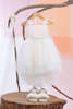 Η Tatiana είναι ένα εκρού light πούδρα φόρεμα που εντυπωσιάζει .Τα γαλλικά τούλια και η δαντέλα του μπούστου εξαιρετικής ποιότητας το κάνουν άψογο για μια βάπτιση. Η κεντημένη τρέσα από πέρλες στη μέση το κάνουν ακόμα πιο μαγευτικό. Περιλαμβάνει πλεξούδα για το κεφάλι.
