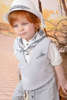 Ο Ntinoulis είναι ένα legendary chic βαπτιστικό κοστούμι. Αποτελείται από γκρι μαλακό παντελόνι εξαιρετικής ποιότητας διακοσμημένο με κουμπιά, λευκό μάο πουκάμισο και νέο γκρι γιλέκο που θα αγαπήσετε πολύ για την εφαρμογή του. Αξεσουάρ είναι το μοντέρνο φουλάρι, το μαντήλι, το κορδόνι για ζώνη και το ψάθινο καπέλο καβουράκι.