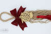 Χριστουγεννιάτικο κρεμαστό διακοσμητικό με ξύλινο ρόδι, φούντα και υφασμάτινο λαμπερό φιόγκο.